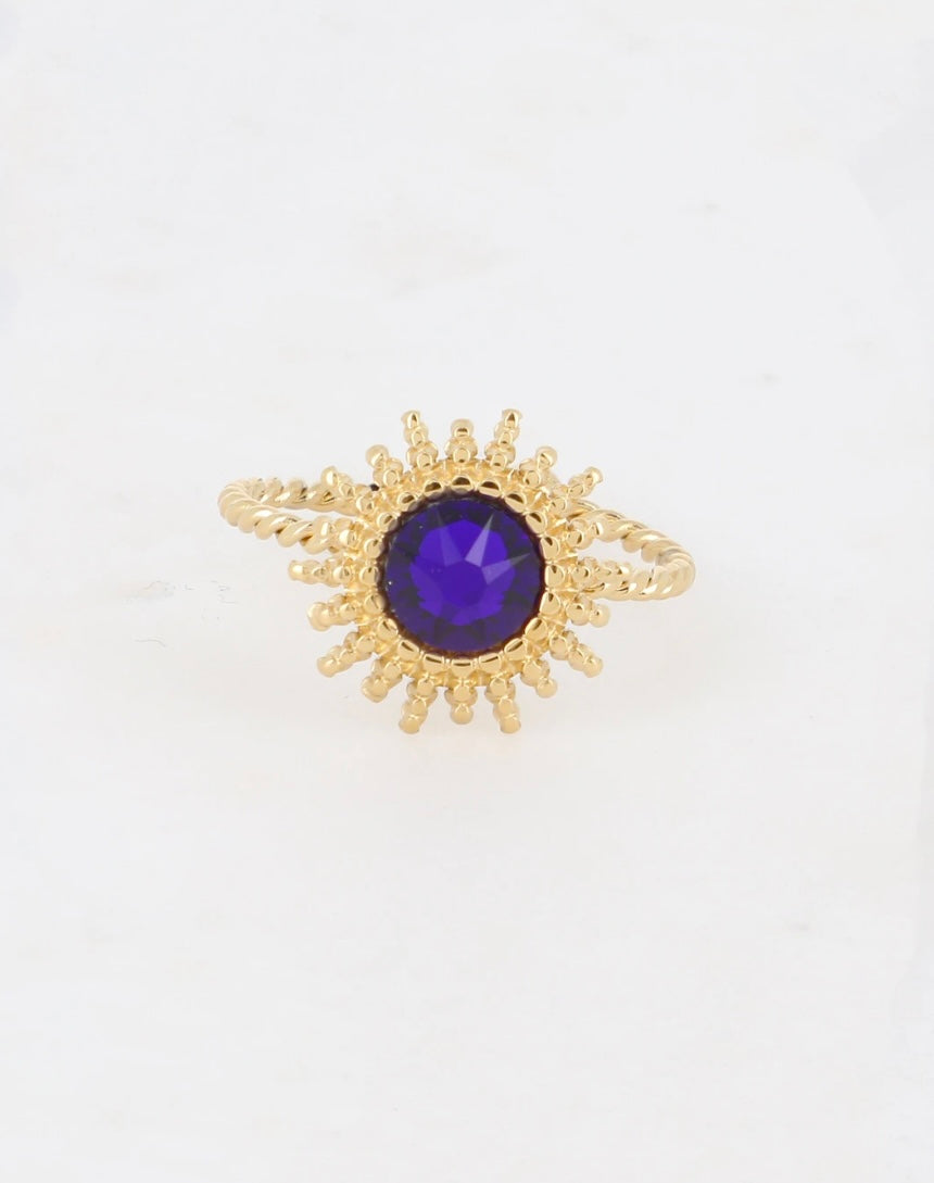 Bague en acier inoxydable composée d'un anneau torsadé avec un motif soleil et ornée de cristaux de Swarovski®.